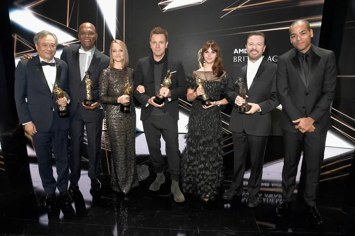 BAFTA Los Angeles was pleased to honor Jodie Foster, Ricky Gervais, Ang Lee, Samuel L. Jackson, Felicity Jones, and Ewan McGregor at the 2016 AMD British Academy Britannia Awards presented by Jaguar Land Rover and American Airlines on Friday, October 28, 2016 at the Beverly Hilton Hotel.